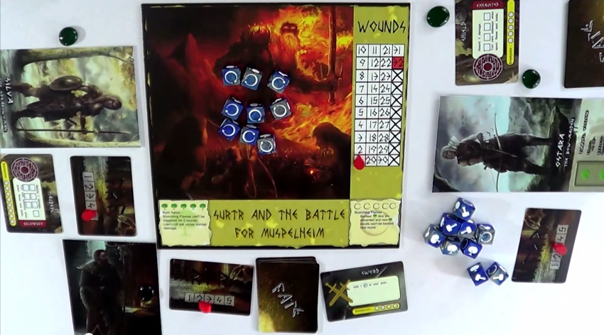 Rune Cast is a cooperative dice & card game where players attempt to score enough wounds to defeat various scenarios. Players have hands that will allow them to use armor and weapons throughout the duration of the game, and may contain powerful Fate cards.